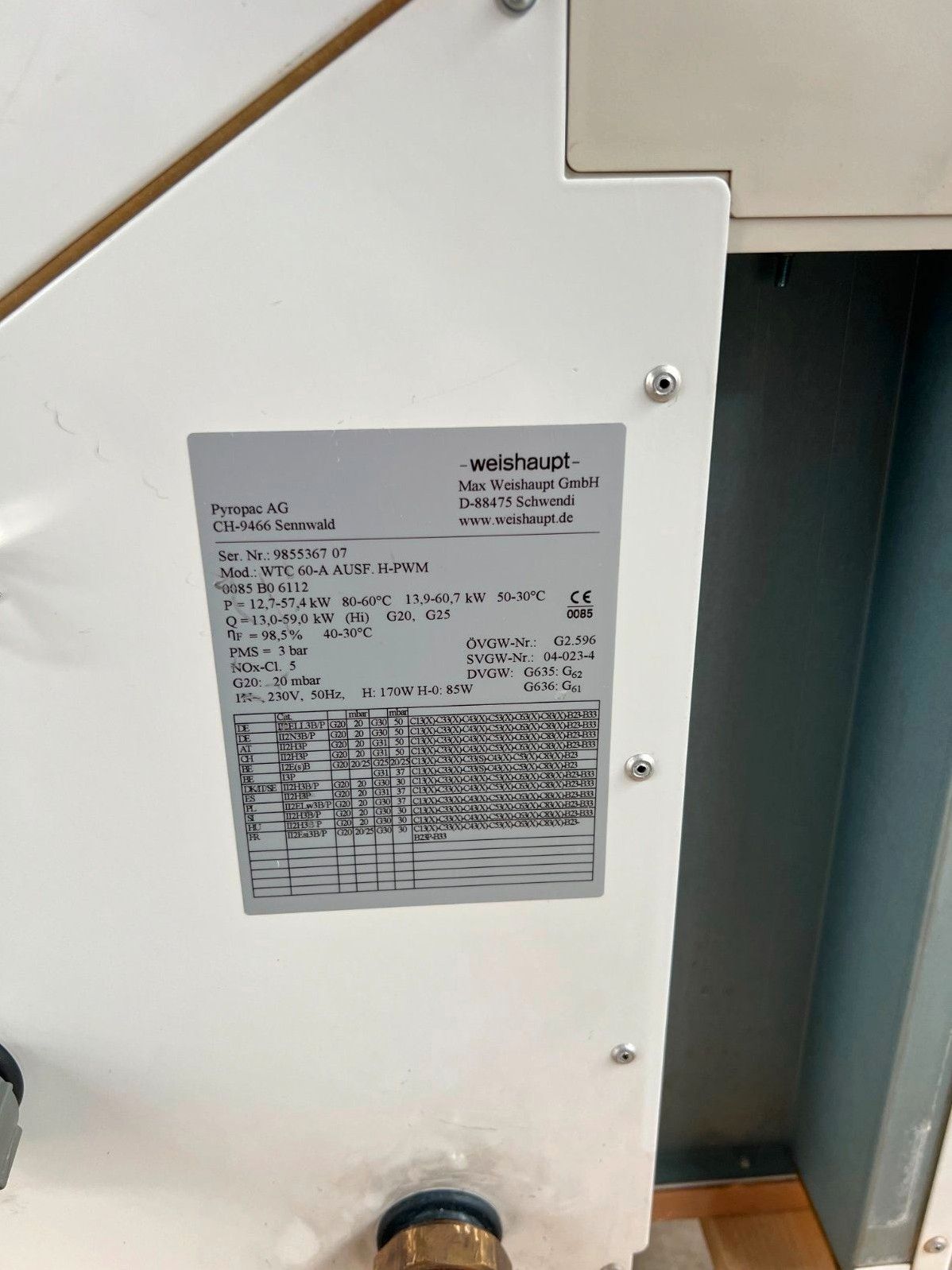 Gasbrennwertgerät Fabrikat Weishaupt, Typ WTC 60-A H-PWM