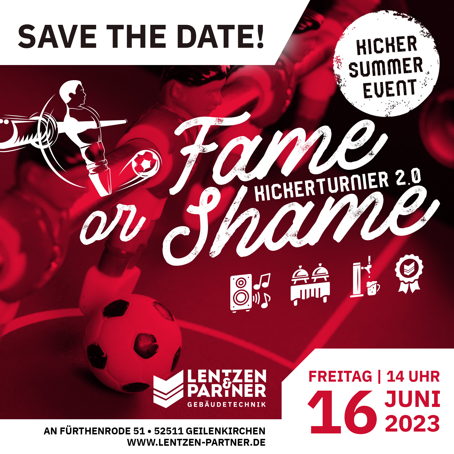 UNSER 2. OFFIZIELLES FIRMENKICKERTURNIER VON LENTZEN & PARTNER STARTET AM FREITAG, 16. JUNI UM 14:00 BEI UNS IM FORUM!